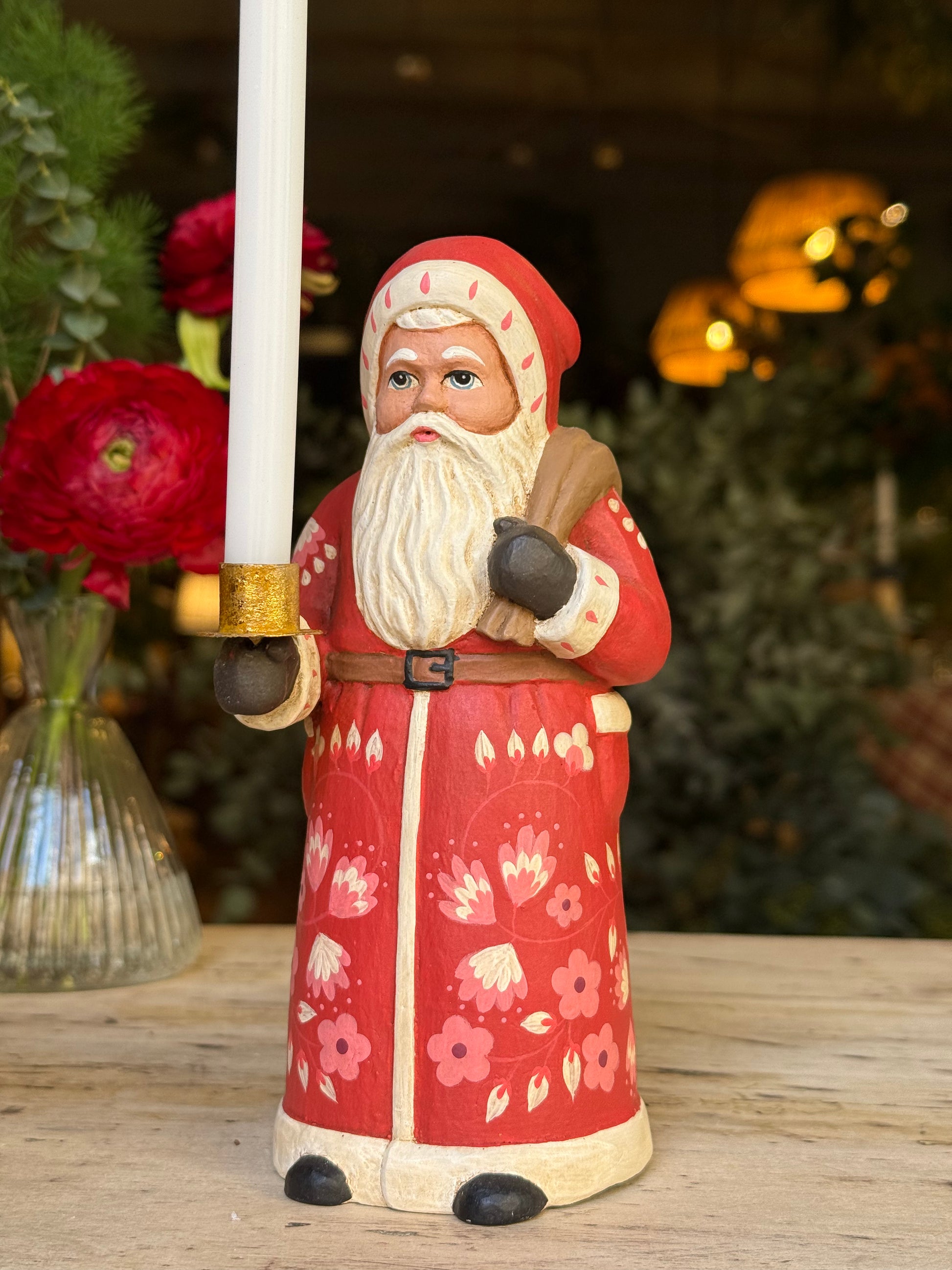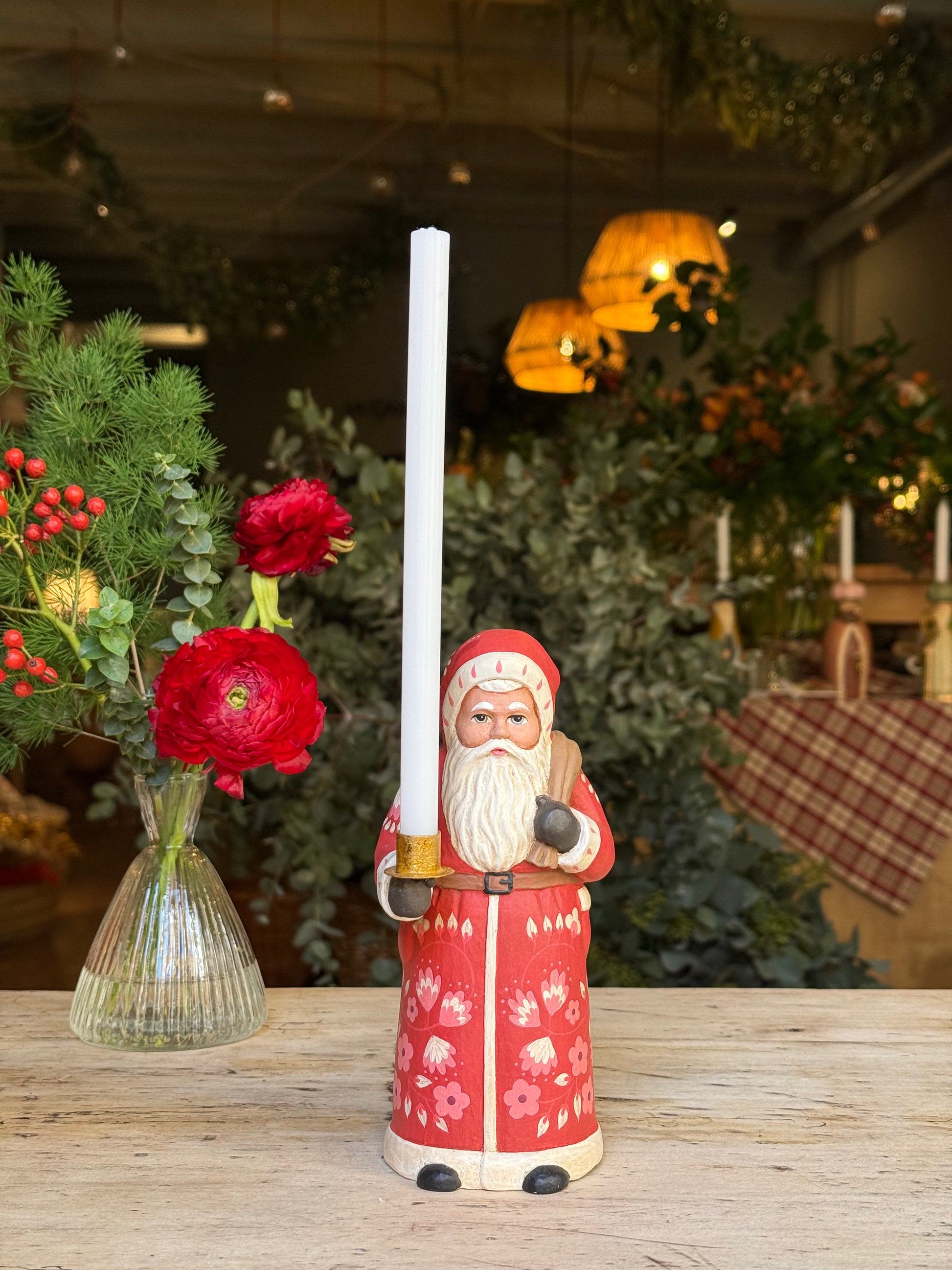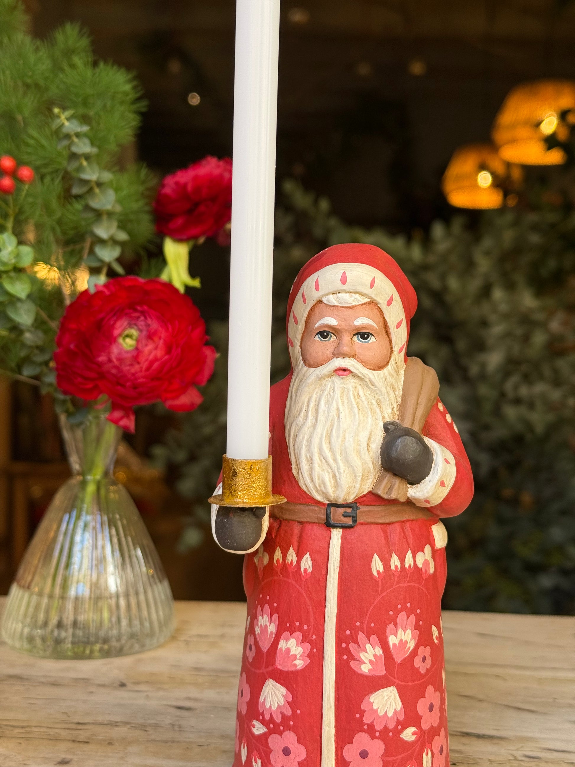 Portavela de San Nicolás elaborado en resina con detalles pintados a mano en tonos rojos muy bonitos.Sus tonos únicos y delicados les dan un carácter muy especial, ideal para decorar cualquier espacio con un toque cálido y festivo.